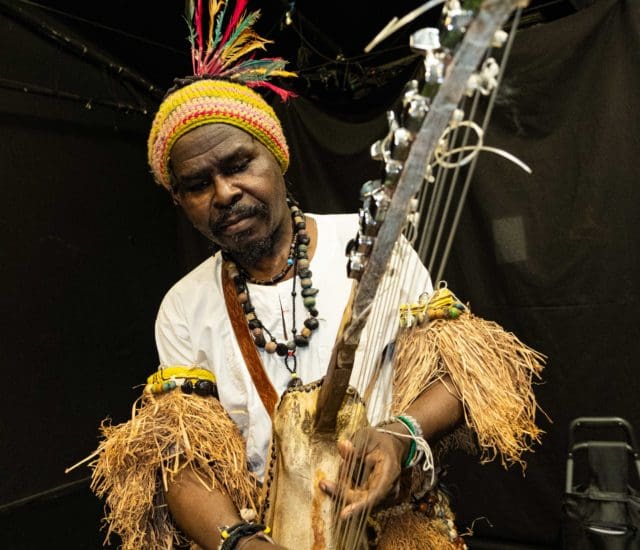 « Dans un monde où l’identité revêt une immense importance, Essindi Koulou François constitue un brillant exemple d’embrassement de ses racines et de ses passions. Son nom porte le poids de l’histoire familiale et de la croissance personnelle, reflétant son parcours aux multiples facettes en tant que musicien, conteur, acteur, percussionniste et facteur d’instruments. Né dans les forêts luxuriantes de Mebomo, un petit village du Sud du Cameroun, le parcours artistique d’Essindi a été façonné par un lien profond avec son héritage et un désir inébranlable de diffuser des messages de paix, d’amour et d’espoir.